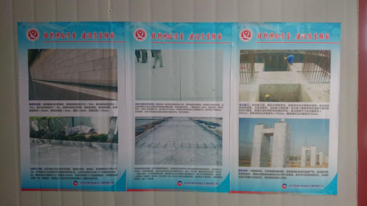 為加大“質量月”宣傳力度,公司在今年的宣傳工作中別具一格,結合目前在建工程的實際,精選了一批反映各項目精細化施工的照片,制作形成“質量月”宣傳海報。宣傳海報突出了各項目部的施工亮點,也對各項目部的規范做法進行了一次交底,起到了良好的宣傳教育效果。按照要求,各項目部將宣傳海報及根據規范和工程實際制作的宣傳板張貼在辦公區及施工現場醒目位置,使全體項目人員在潛移默化中增強了質量管理意識。