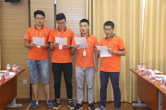 參會人員穿著統(tǒng)一的工作服,會場呈現(xiàn)出一片火焰般的橘紅色,充滿了朝氣與力量。培訓(xùn)首先觀看了天創(chuàng)公司宣傳片,公司黨支部副書記肖三秀隨后為大家介紹了公司支部班子成員及分工情況,并代表公司對各位新員工的加入表示熱烈歡迎。在此之后,各部門負(fù)責(zé)人、各項(xiàng)目經(jīng)理依次介紹了各部門職責(zé)與所負(fù)責(zé)項(xiàng)目的現(xiàn)狀。隨著議程一項(xiàng)項(xiàng)推進(jìn),會場的氛圍逐漸輕松起來,33名新員工依次起立進(jìn)行了自我介紹,并表達(dá)了與企業(yè)共同成長的迫切希望。