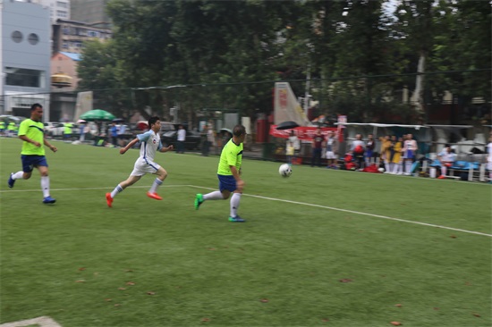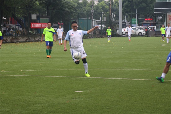 中場休息時間,天創公司7名青春靚麗的足球寶貝為雙方隊員帶來了精彩的啦啦操表演,充滿活力的舞蹈引得現場陣陣歡呼。下半場雙方易邊再戰,天創公司董事長程強替補上場,開場僅五分鐘便取得進球,幫助球隊進一步擴大了領先優勢。在此之后,鐘鑫公司加大了防守力度,抓住后衛解圍失誤的機會在5分鐘之內連續打入兩球,將分差縮減到只有一球。隨后羅琦突破到禁區內遭到對方球員犯規,獲得了一粒點球并成功打進。終場前五分鐘,天創公司隊長張顯從中路突破將球直塞到禁區前,埋伏已久的前鋒程強拍馬趕到,一記漂亮的抽射將球打進,將最終比分定格為5:2。