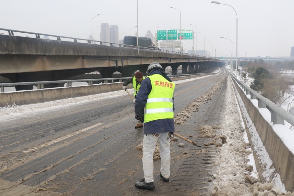 三環(huán)線高架(江城大道-龍陽大道)除雪現(xiàn)場