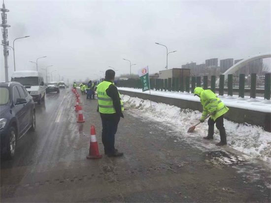 16時40分,墨水湖大橋橋面積雪全部清理完畢;