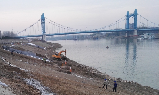 自11月至今,該工程主要進行苗木種植、防洪護坡開挖修整、護岸砌筑、植生塊鋪裝等工作。其中綠化工程方面已完成苗木種植130棵;施工方面完成護腳砌筑約2000立方米,植生塊已鋪裝12000平方米。與此同時,為響應湖北省加強環境保護的號召,該項目部抽調專人對施工現場及周邊存在的污染源進行了及時清除。由于本月漢江水位提升及現場施工材料運輸困難,該工程施工進度受到一定影響。為搶抓工期,該項目部將加大人力、機械設備等各項資源投入,以便盡快完成施工任務。