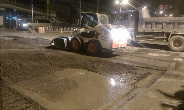 4月,解放大道下延線項目部主要完成部分頂管施工工作,先后銑刨漢黃路道口瀝青砼路面約5000平米,并完成機動車道與非機動車道約25.2萬平米瀝青混凝土攤鋪施工任務。為確保項目能夠順利開展余下人行道、機動車道及非機動車道部分的收尾工作,項目部正積極配合業主開展道排部分的拆遷任務。