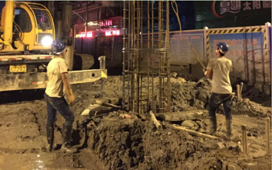 經過項目部與交管部門耐心細致的協調溝通,該工程解放大道交通導流方案最終于7月初獲得通過,解放大道西主道隨即成功打圍,進入樁基施工階段。同時,解放大道往宗關方向南北兩側排水管道及電力遷改工作順利完成,項目部集中火力迅速恢復道路兩側交通。為同時確保施工進度和工程質量,項目部不分晝夜24小時連續作業,在材料、施工測量、技術方案等各方面嚴格把關,實時監測每一道工序的施工,并積極響應和落實安全文明施工工作。此外,該項目部每周組織項目全員召開一次培訓交流會,由施工員主講現場施工專業知識,通過相互的交流探討進一步提升項目人員專業化施工水平。