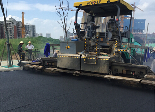 7月,受連續(xù)強降雨天氣影響,該工程進度有所阻滯,但項目部充分利用有限的晴天,先后完成人行道600平方米的混凝土澆筑、500米的步磚安裝施工及全線60個檢查井的提升作業(yè)。此外,該工程項目部重點推進了瀝青混凝土路面的攤鋪施工。在項目部全員的精心籌劃及精細施工下,經(jīng)過兩晝一夜的奮戰(zhàn),該工程順利完成了全線9000平方米瀝青混凝土的攤鋪施工,為桃墨路的順利通車奠定了基礎。
