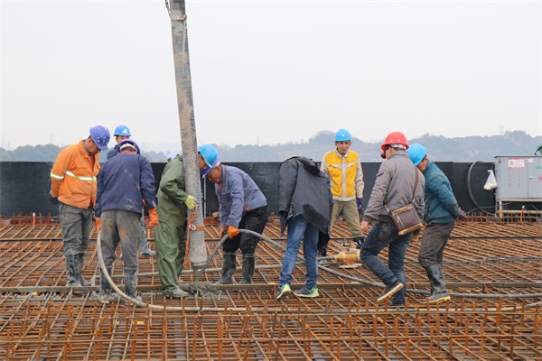 墨水湖北路工程作為公司首個跨湖工程,受到了公司上下的高度關(guān)注。該項目部秉持著“安全為了生產(chǎn),生產(chǎn)必須安全”的生產(chǎn)理念,在安全文明施工方面嚴格把關(guān),組織專班時刻檢查現(xiàn)場施工情況,及時排除安全隱患。在此前提下,項目部一鼓作氣,連續(xù)進行了模板鋪設(shè)、鋼筋綁扎、波紋管穿射等多項施工,經(jīng)檢驗合格后,正式開始了湖上預(yù)應(yīng)力箱梁的混凝土澆筑工作。現(xiàn)場由兩臺混凝土泵車同時作業(yè),現(xiàn)場人員分成兩個小組,在同一斷面上并排進行混凝土澆筑,歷經(jīng)一天一夜,于3月21日上午8:30順利完成了共計1200立方米的混凝土澆筑工作。公司總工辦以該工程箱梁澆筑現(xiàn)場為示范點,組織了各項目技術(shù)負責(zé)人對橋梁施工箱梁砼澆筑技術(shù)進行了觀摩學(xué)習(xí)。