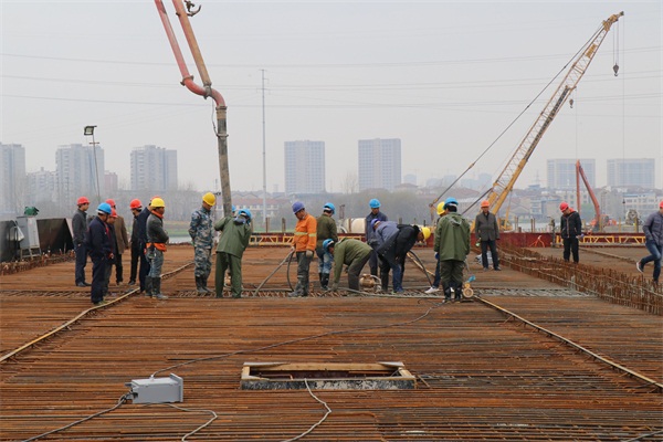 3月20日上午,伴隨著施工現(xiàn)場震耳欲聾的鞭炮聲,墨水湖北路(孟家鋪立交~龍陽大道)工程湖上首聯(lián)預(yù)應(yīng)力箱梁的混凝土澆筑工作正式開始,標(biāo)志著整個工程的施工工作又進入了一個新階段。