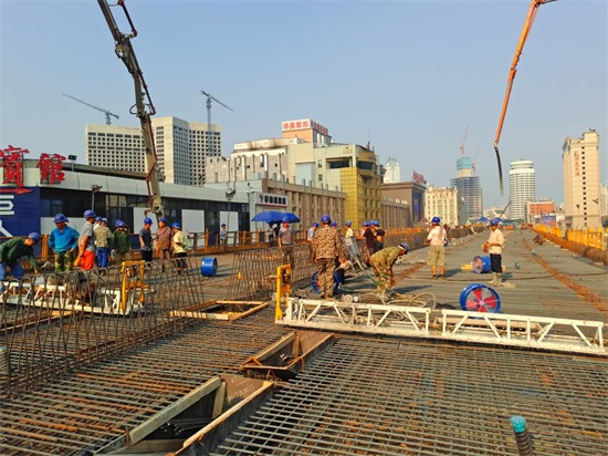 截止到30日11時(shí),在全體員工的不懈努力下,寶豐路硚口路快速化(建設(shè)大道-京漢大道)改造工程解放大道第五聯(lián)箱梁澆筑施工順利完成,為后續(xù)施工打下了堅(jiān)實(shí)的基礎(chǔ)。( 葉果 文/圖)