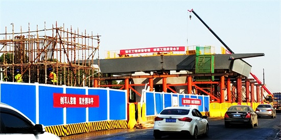 本工程的橋梁上部結構均設計為鋼箱梁,共計13聯2萬余噸鋼箱梁,其中沿臨空港大道方向主線橋6聯,與金山大道互通匝道7聯。不論是鋼箱梁制作還是吊裝焊接,現場施工都面臨著巨大壓力。為了確保節點工期目標順利完成,項目部對整個橋梁工程進行WBS任務分解,層層細化,反復優化,并與橋梁下部結構施工統籌謀劃、同步部署、同步推進。在公司領導的帶領下、各職能部門鼎力支持下,經過精心策劃和周密安排,項目部在進行鉆孔灌注樁施工時,同步開展鋼箱梁施工相關工作,包括各類商務談判、原材料采購檢測、進度計劃優化、目標下達、吊裝方案專家論證、焊接工藝評定、鋼箱梁首節段驗收等。目前,整個立交施工現場鉆孔灌注樁、承臺、墩柱、鋼箱梁吊裝與焊接等各項工序正熱火朝天地進行,既有流水作業也有交叉施工、有條不紊地向既定目標邁進。