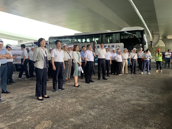 在第七屆世界軍運會即將進入100天倒計時之際,由漢陽市政天創公司實施的金山大道(九通路-機場路)改擴建工程正在進行緊張的收尾工作,工程全線基本完工。7月1日下午,東西湖區委、區人大常委會、區政府、區政協、區法院、區檢察院領導,離退休老干部、區內部分先進人物、黨代表、人大代表及政協委員等360余人來到金山大道工程施工現場,參觀這項軍運會重要配套道路工程的建設情況。