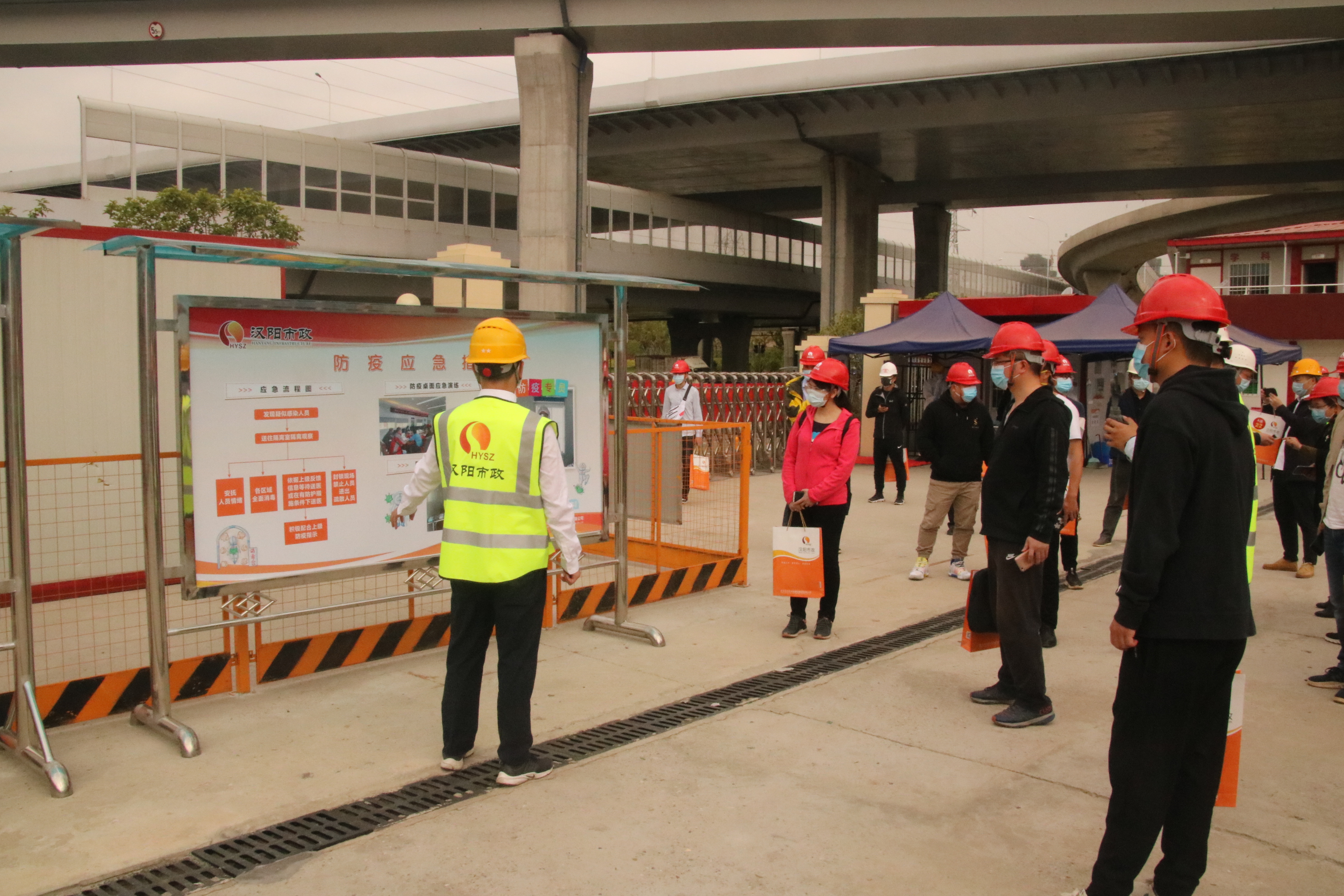 4月17日,由武漢市市政行業協會組織,武漢市漢陽市政建設集團有限公司主辦的復工復產防疫觀摩會在漢陽市政仙女山路工程項目舉行。此次觀摩會共邀請27家同行業代表約110人前來觀摩,同步采取“云直播”模式進行線上觀摩。