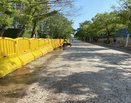 在搶抓進度的同時,三店中路改造項目對現場的安全文明工作也高標準嚴要求,始終把“安全生產、自覺規范”的安全理念融入到施工現場的各個環節,在沿線水馬上張貼交通導向牌及提示標語,每天安排安全文明專班人員對沿線水馬進行清理,確保圍擋及水馬干凈整潔,同時采取逐條車道修復、機動車道全封閉半幅路作業等方式施工,盡力減少項目建設對周邊居民生活的影響。項目部堅持每天自查,發現問題及時整改,確保施工有序推進。(天創公司 蘭月寧 文/圖)