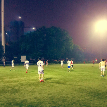 當(dāng)我跟著天創(chuàng)公司足球隊(duì)一起走進(jìn)新華路的球場(chǎng)時(shí),驀地想起上一次認(rèn)認(rèn)真真踢一場(chǎng)球還是在小學(xué)時(shí)代。那時(shí)候每天做值日的地方是一塊小草坪,兩端各是貼著草坪邊界種下的一排香樟,稍微居中的兩棵樹(shù)的間隙正好被我們拿來(lái)當(dāng)做球門(mén),男孩子們每天中午都會(huì)在這兒踢到響鈴然后狂奔到教室。當(dāng)時(shí)班里大部分男孩子都是巴薩球迷,羅納爾迪尼奧是這群孩子一致的偶像,我也不例外,總會(huì)在放學(xué)后一遍又一遍跟著小伙伴們?cè)诓萜荷夏7滦×_的牛尾巴過(guò)人和踩單車(chē),仿佛永遠(yuǎn)不會(huì)覺(jué)得累。2006年巴薩有一場(chǎng)對(duì)陣比利亞雷亞爾的比賽,羅納爾迪尼奧在比賽的最后時(shí)刻完成了一記精彩的倒鉤射門(mén),這粒進(jìn)球讓我真切地見(jiàn)識(shí)到了這項(xiàng)運(yùn)動(dòng)獨(dú)特的魅力,我也開(kāi)始能理解,為什么我的叔叔們?cè)诳辞虻臅r(shí)候會(huì)有那樣忘情的吶喊。