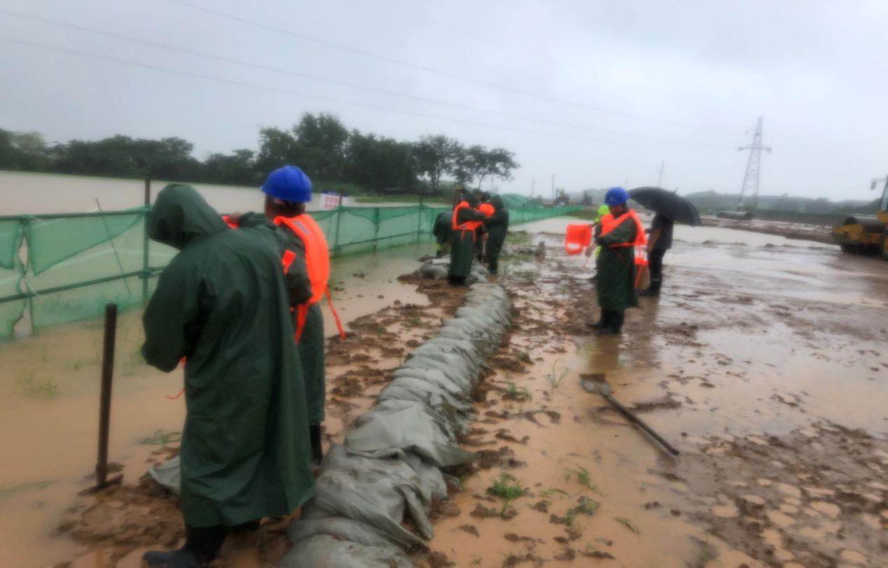 連綿驟雨成洪獸,濁水難休。防汛排澇顯身手,風雨同舟。天創公司將繼續風雨兼程、勇擔責任,打贏防御“強降雨”硬仗。(各項目部/文 各項目部/圖)