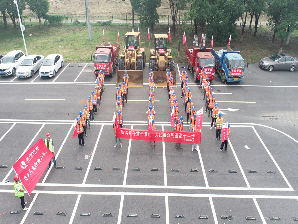 7月19日,仙女山項目部收到上級指令,組織2名管理人員、11名機械操作手及60名勞務人員,調集11臺機械,救生衣、雨衣、雨靴、鐵鍬、編織袋、沙袋等防汛物資迅速前往漢陽江灘防汛一線進行駐守,隨時待命。