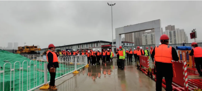 在現場觀摩環節,參會人員參觀了徑河五路項目現場安全文明標準化的落實情況,并就管理過程中的細節進行探討,為后續改進質量安全管理工作交流經驗。