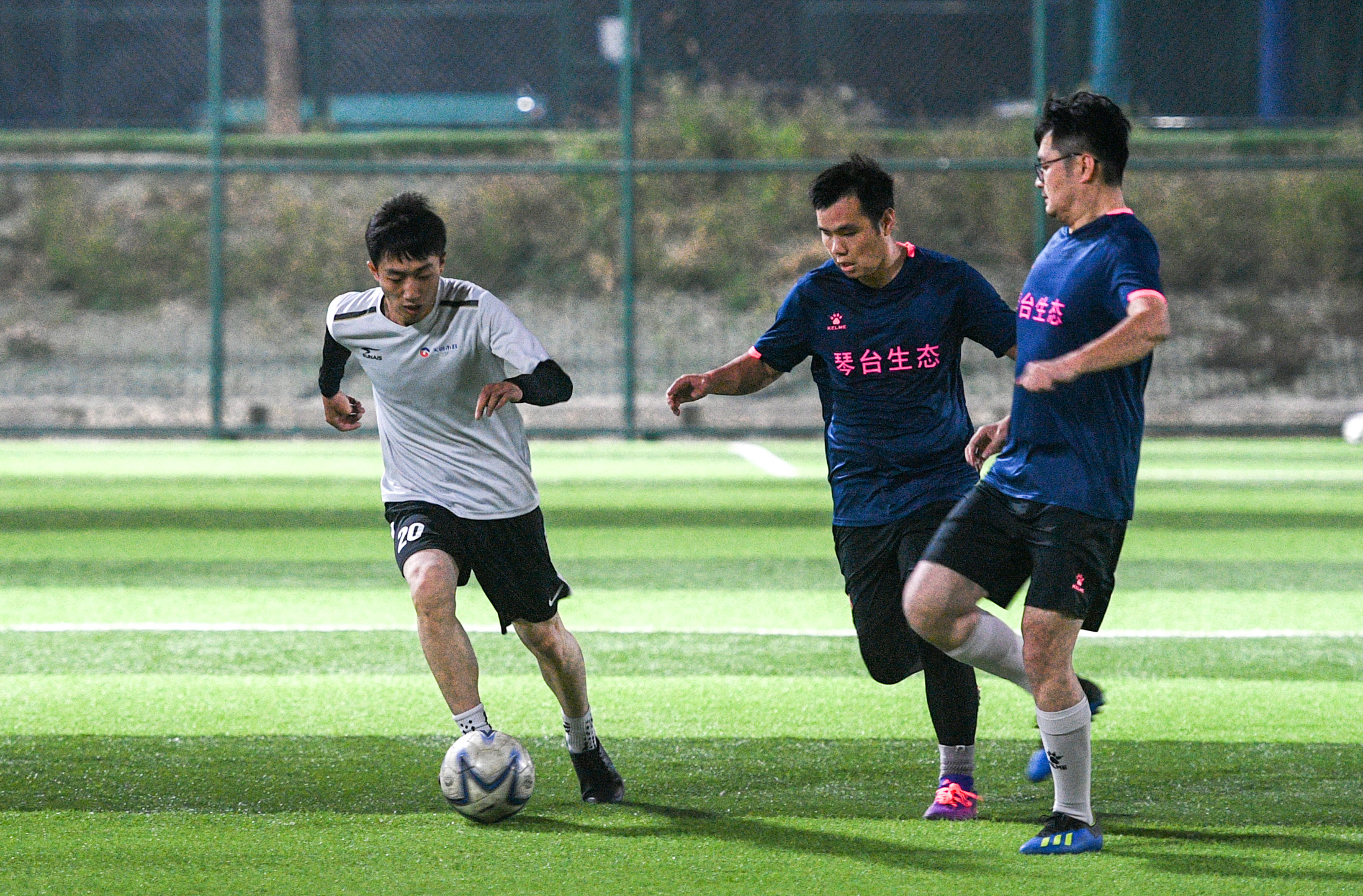面對勁敵五、八公司足球聯隊,天創隊依然堅持自己的打法,開場哨響便向對手球門發起了攻擊。