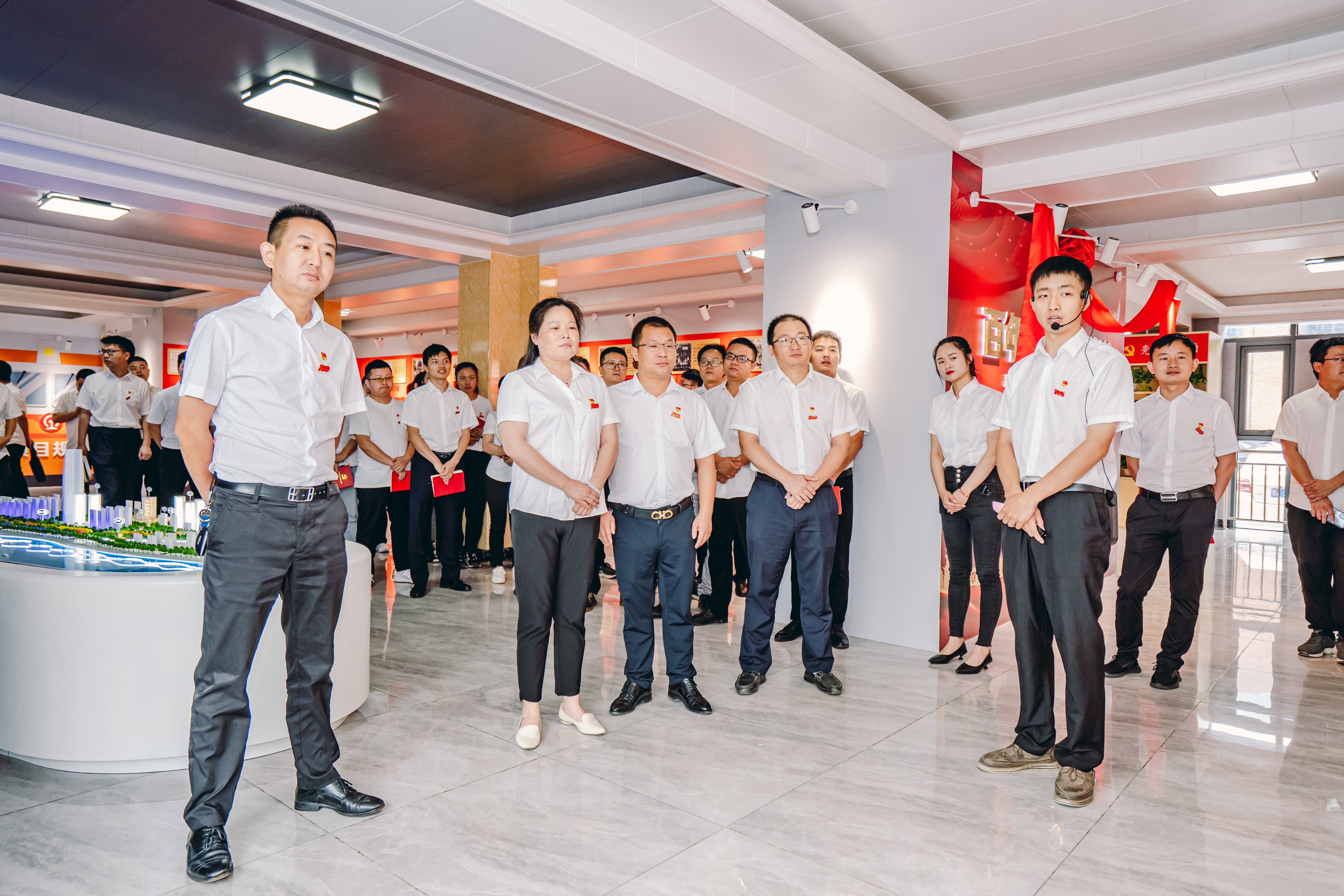 在“百年黨史·紅色傳承”的主題黨課開講之前,黨員齊唱國歌,8名同志被授予公司2021年優秀共產黨員稱號,武昌生態文化長廊工程(友誼大道-建設十路)項目部被授旗“黨員先鋒隊”。