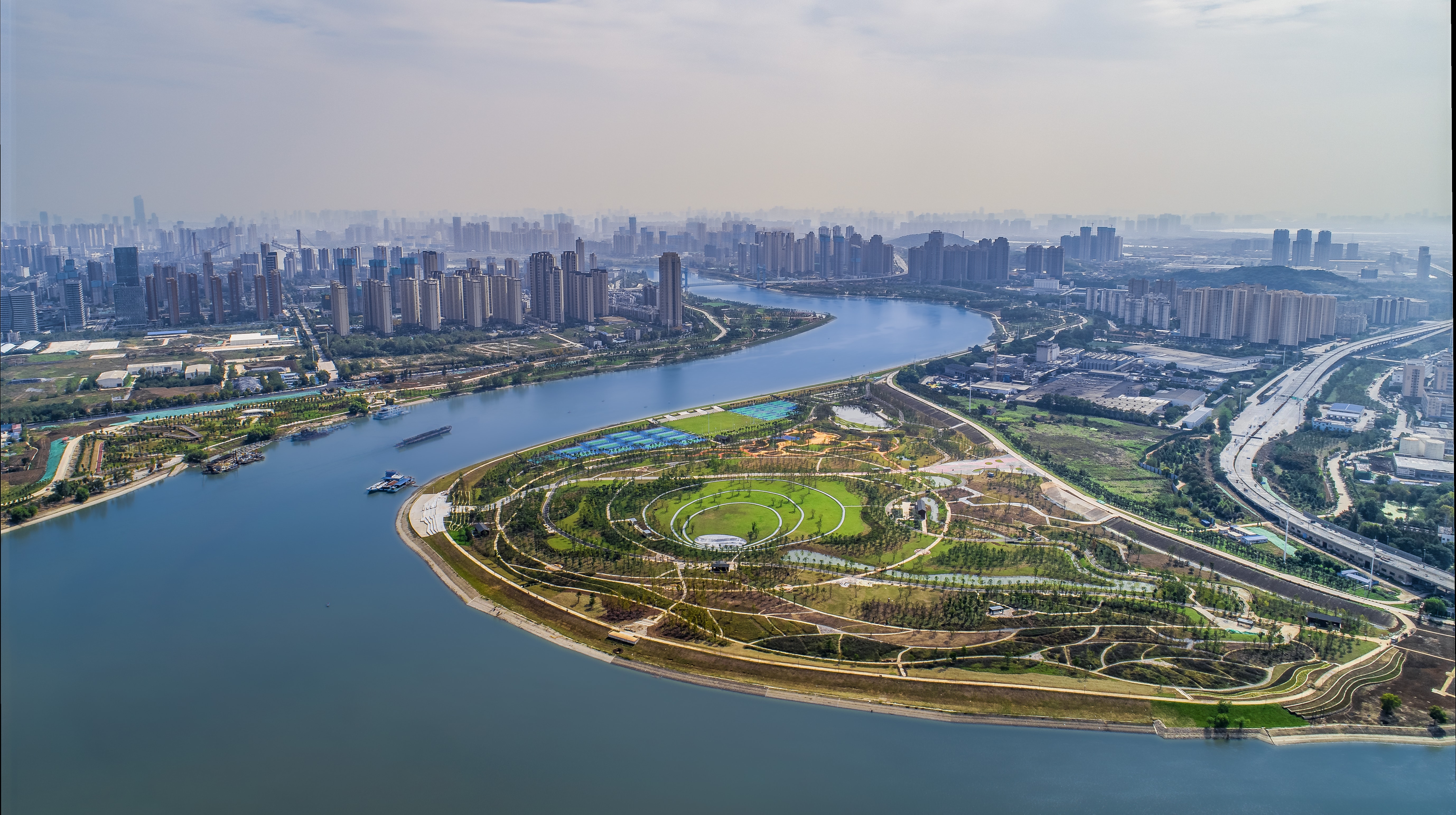 該工程全長3100米,囊括江漢六橋至長豐橋堤段,使用5類新技術,節約利用磚塊鋪設防洪,整修土地進行綠化。項目響應生態建設口號,開啟百里長江生態廊道,增加市民運動休閑場所,帶動城市發展步伐,呈現出“一帶兩軸三環六核心”的局面。