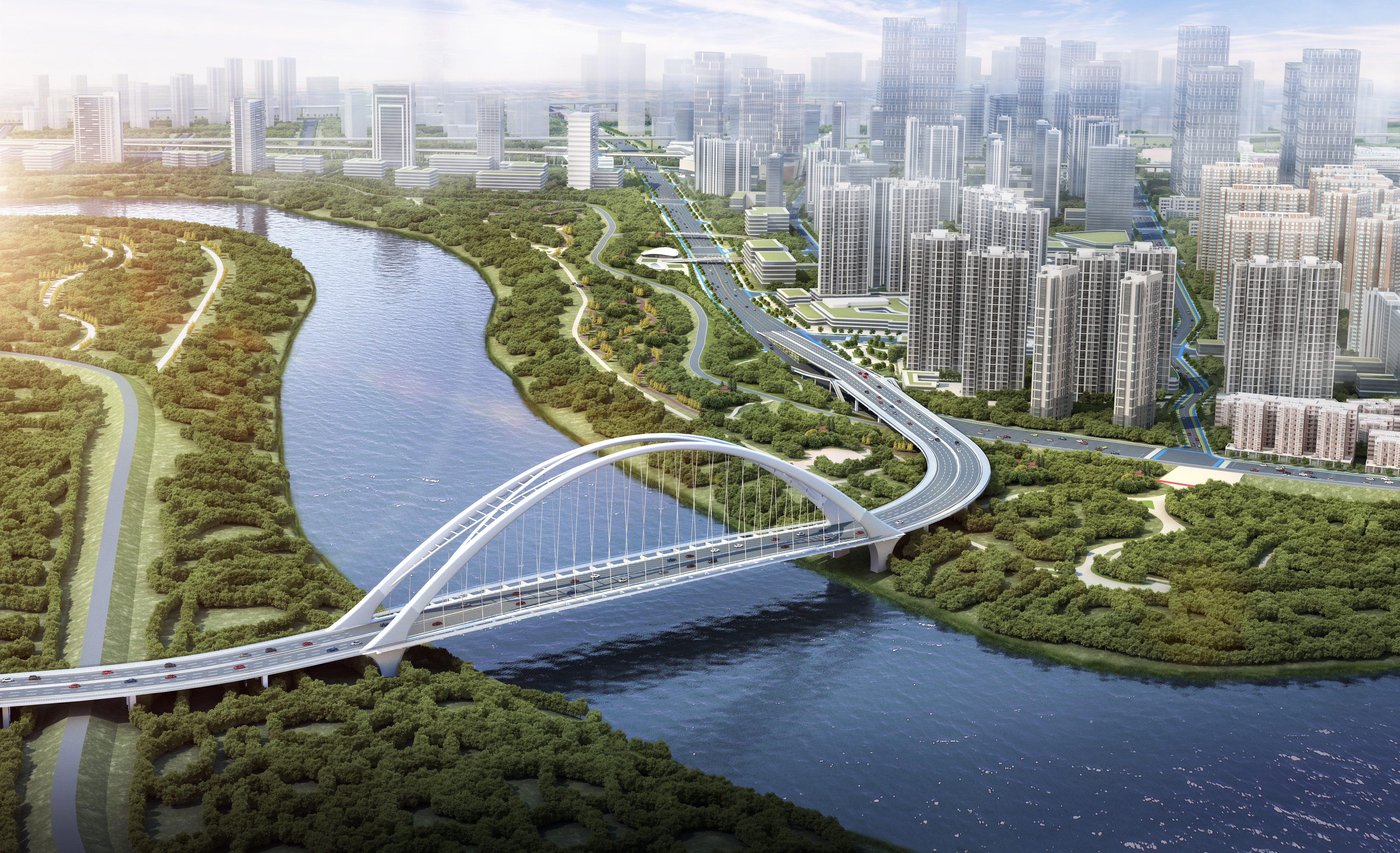 江漢十橋位于江漢五橋(長豐橋)和江漢六橋(古田橋)之間,是武漢市城市規(guī)劃的第十座跨漢江通道,工程西起于漢陽岸百威路的什湖路路口,東止于漢口岸古田一路的長云路口,主線全長約4123m,其中高架橋約2317m,含跨江主橋855m,引道188m,地面主線 1618m,地面輔道1829m,道路紅線寬40-55m。