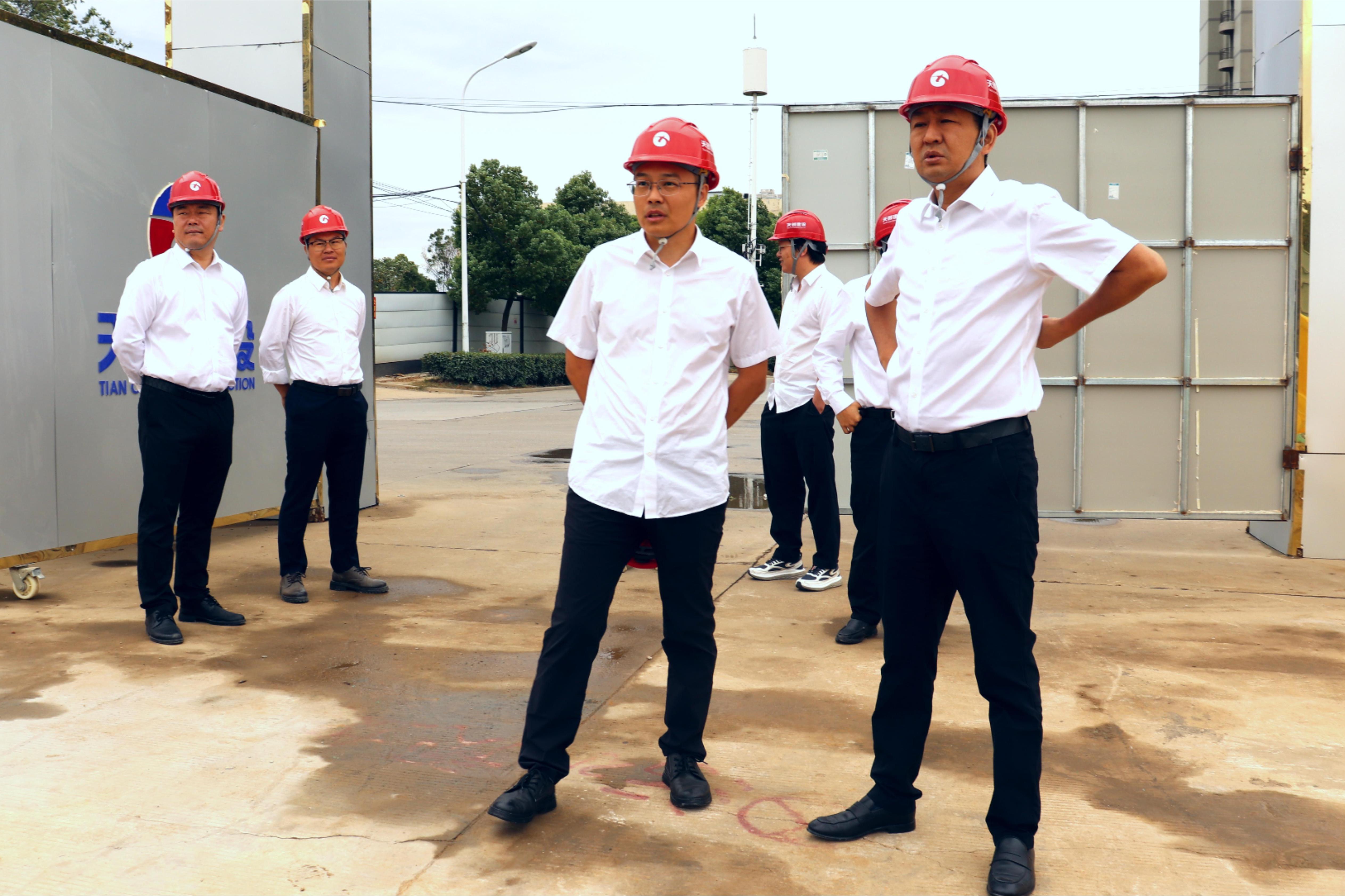 檢查過程中,天創建設黨委書記、董事長、總經理曹元鑫和常務副總經理羅明飛分別帶隊,聽取了項目匯報,了解了項目進度、安全生產、質量管控等情況。